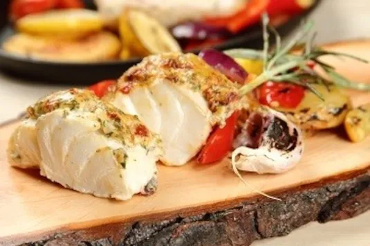 - Ryba pieczona z przyprawą curry i rodzynkami – orientalne akcenty w połączeniu z rybą.